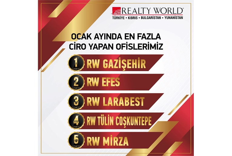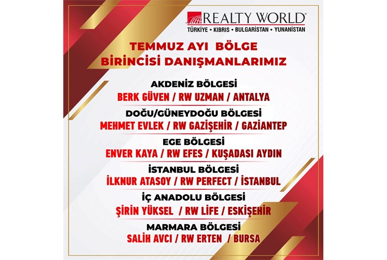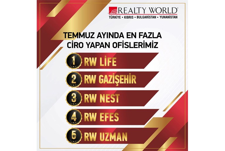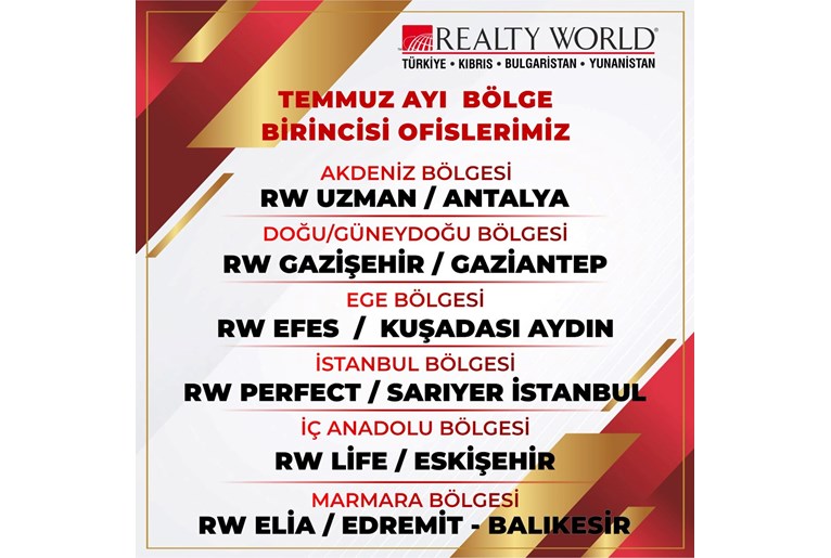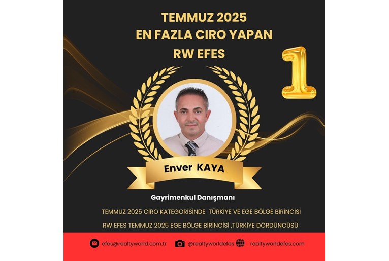 OFİSİMİZ REALTY WORLD EFES TEMMUZ 2025 AYINDA EGE BÖLGE BİRİNCİSİ OLMUŞTUR.